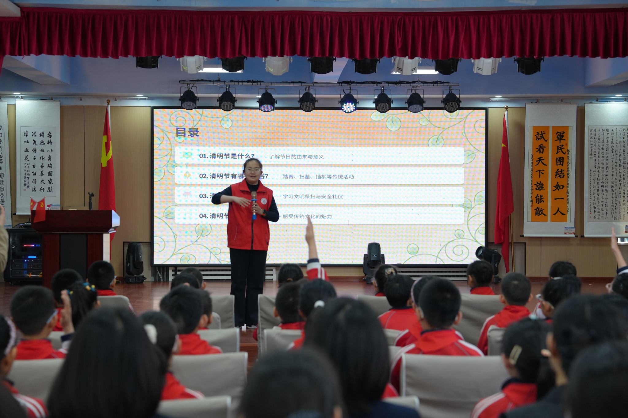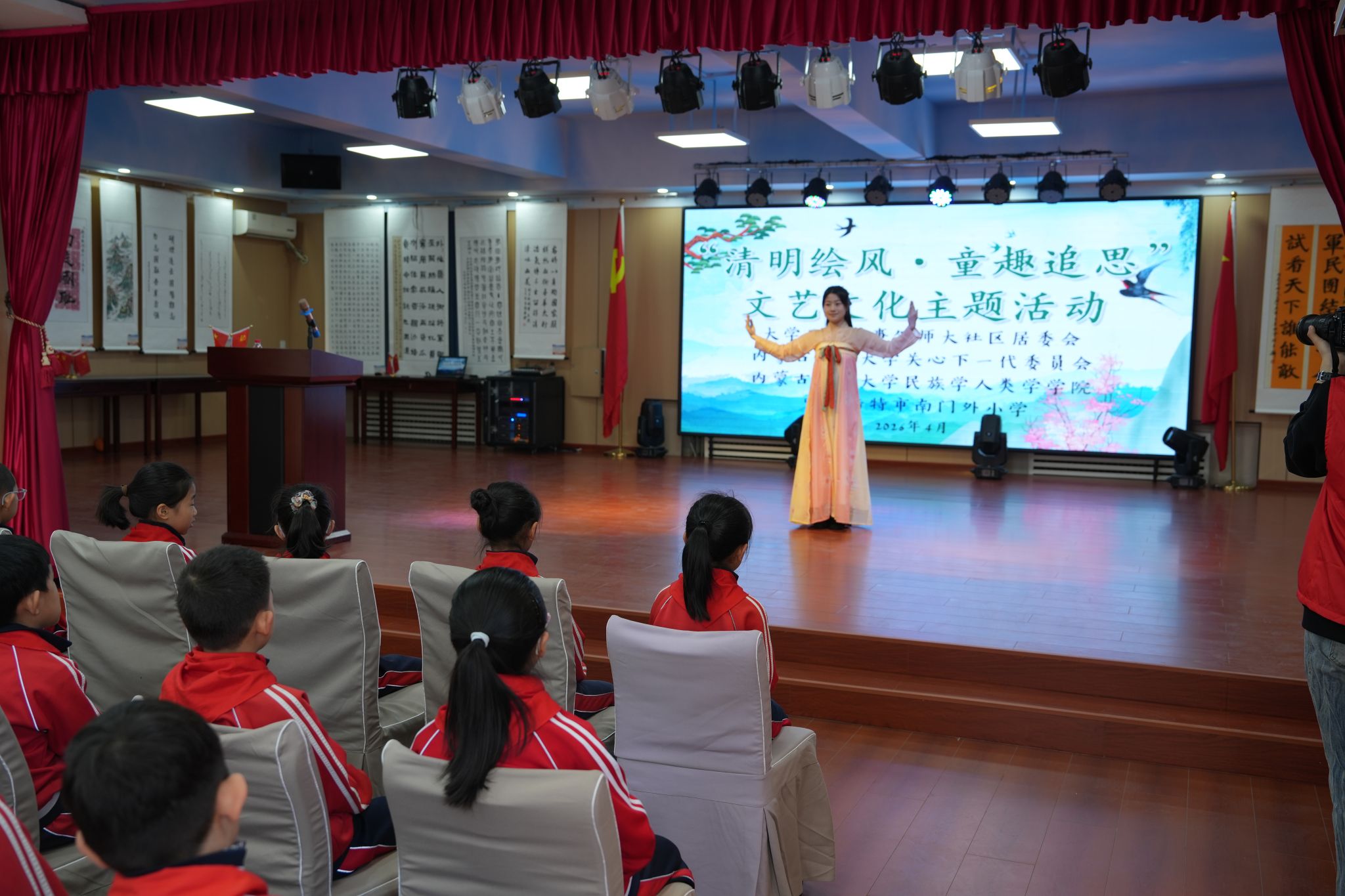 本次活动来自南门外小学的30余名小学生及20余名教师参加活动,由内蒙古师范大学民族学人类学学院的老师为学生们讲述了清明节的故事与习俗,从了解节日的由来与意义、清明节有哪些习俗、学习文明祭扫与安全礼仪、清明节的诗词与童谣,感受传统文化的魅力和培养爱国情怀等方面展开生动讲解,并结合主题表演了舞蹈和歌曲节目,引导孩子们在互动中体悟慎终追远的文化内核。