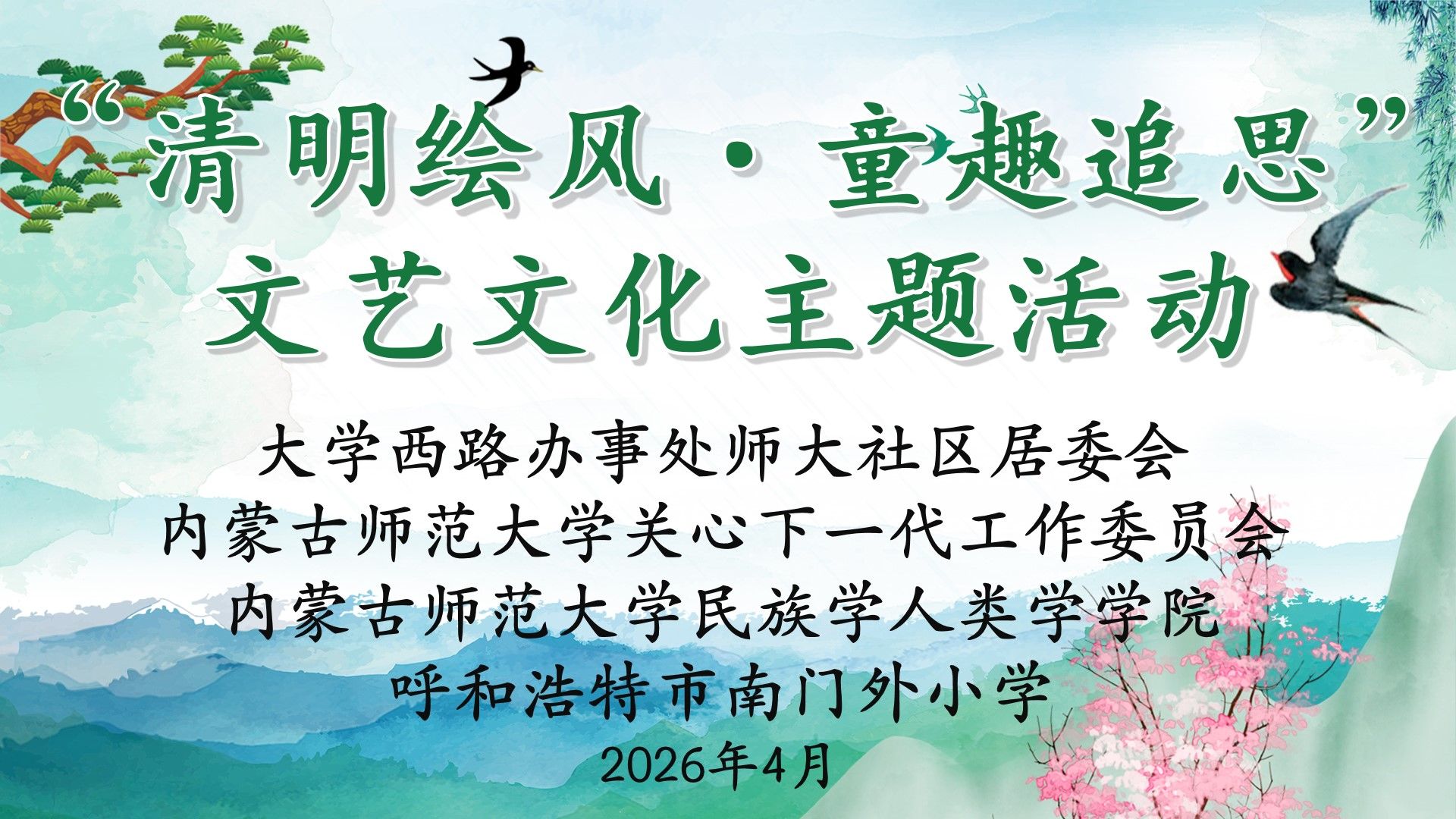 清明时节,春风和煦,草木萌发。内蒙古师范大学关心下一代工作委员会为传承红色基因,引导青少年铭记历史、感恩缅怀、培养爱国情怀、了解清明文化,于4月2日上午在内蒙古师范大学离退休教职工活动中心联合内蒙古师范大学民族学人类学学院、大学西路办事处师大居委会、南门外小学组织开展了以“清明绘风·童趣追思”文艺文化为主题的清明节教育活动。
